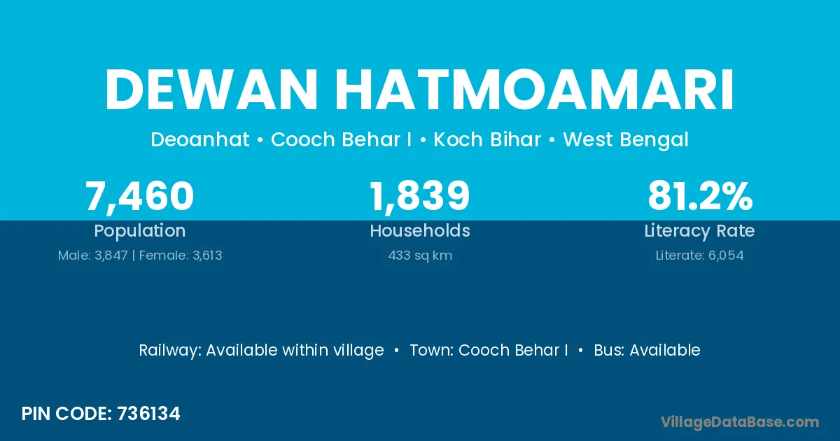 Cooch Behar I is the nearest town to Dewan Hatmoamari village for major economic activities