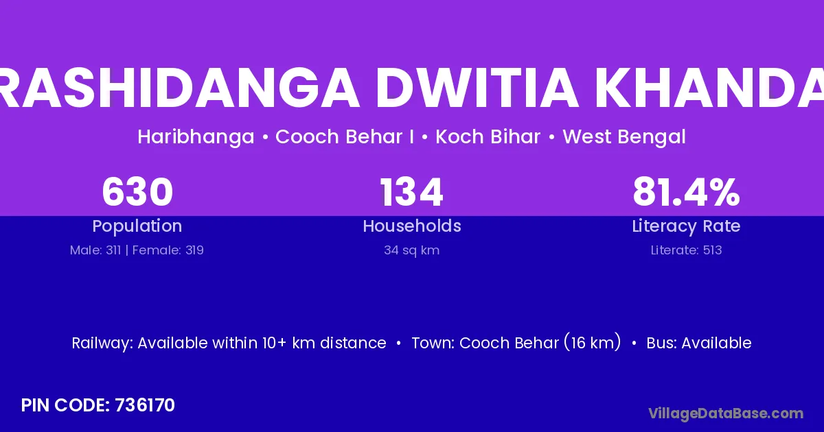 Cooch Behar (16 km) is the nearest town to Rashidanga Dwitia Khanda village for major economic activities and is located approximately 16 km away.