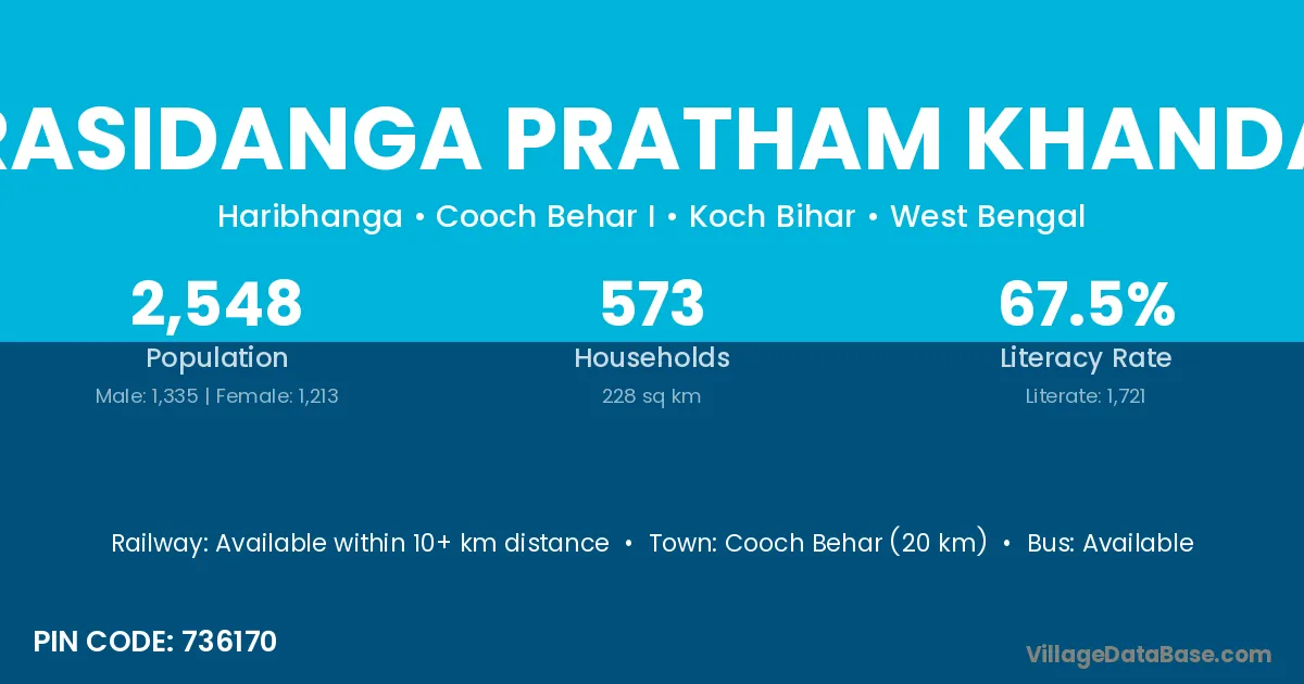 Cooch Behar (20 km) is the nearest town to Rasidanga Pratham Khanda village for major economic activities and is located approximately 20 km away.