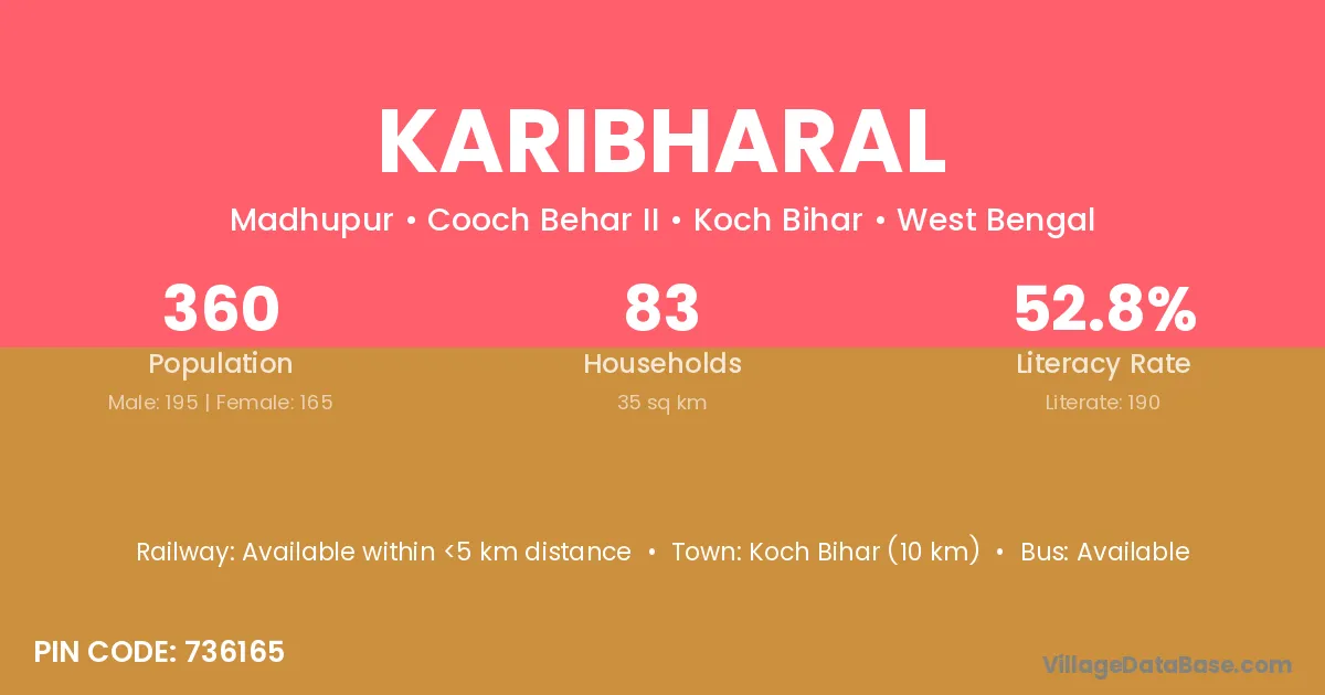 Koch Bihar (10 km) is the nearest town to Karibharal village for major economic activities and is located approximately 10 km away.