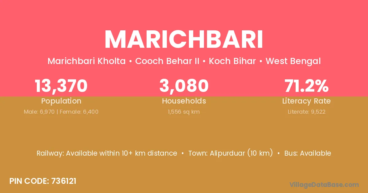 According to Census 2011 information, the village code of Marichbari village is 736121.