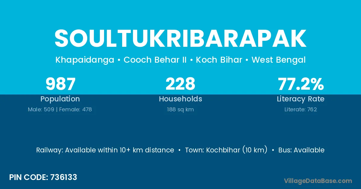 Kochbihar (10 km) is the nearest town to Soultukribarapak village for major economic activities and is located approximately 10 km away.