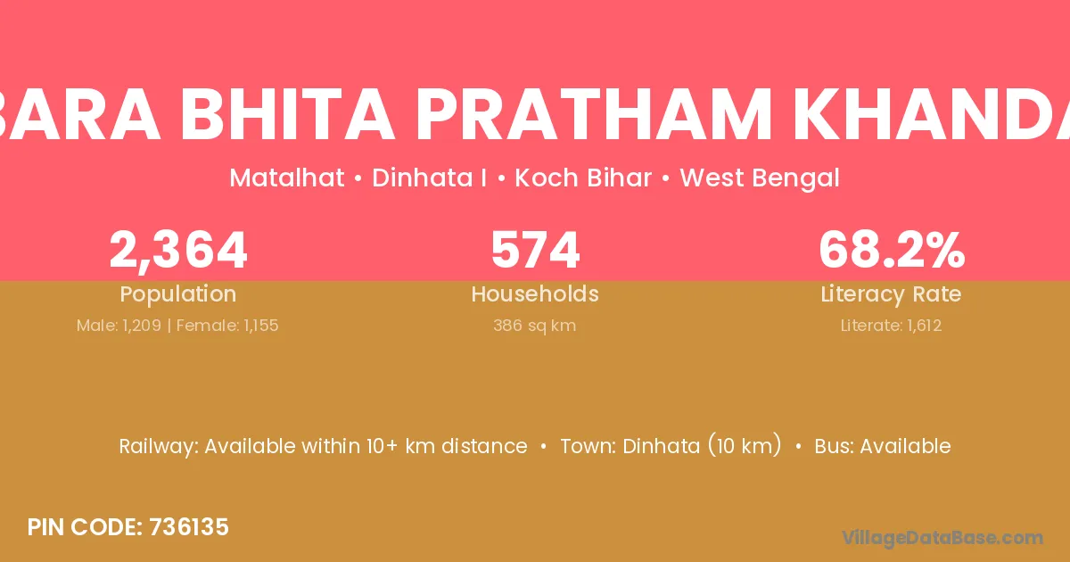 Dinhata (10 km) is the nearest town to Bara Bhita Pratham Khanda village for major economic activities and is located approximately 10 km away.