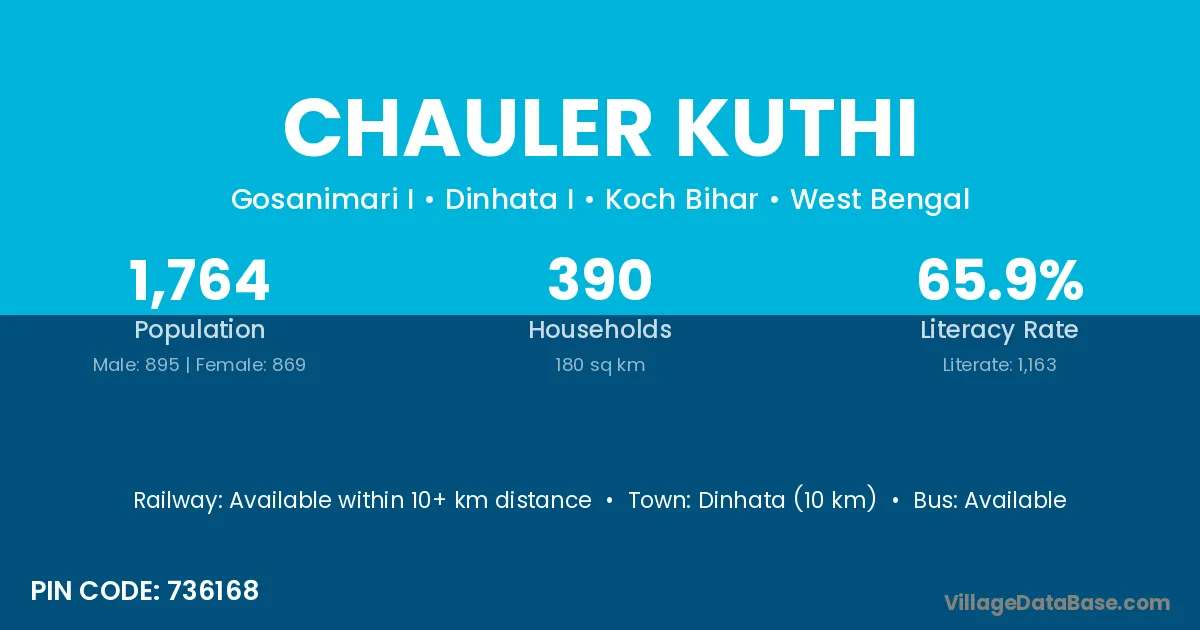 Dinhata (10 km) is the nearest town to Chauler Kuthi village for major economic activities and is located approximately 10 km away.