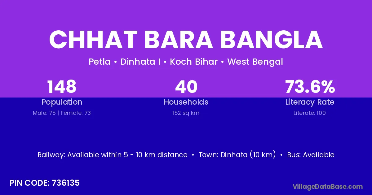Dinhata (10 km) is the nearest town to Chhat Bara Bangla village for major economic activities and is located approximately 10 km away.