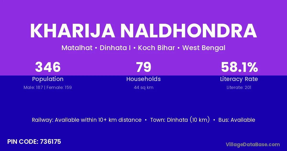 Dinhata (10 km) is the nearest town to Kharija Naldhondra village for major economic activities and is located approximately 10 km away.