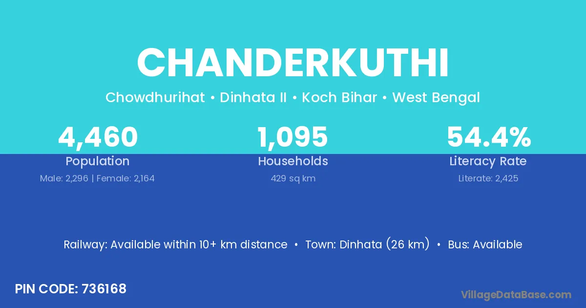 Dinhata (26 km) is the nearest town to Chanderkuthi village for major economic activities and is located approximately 26 km away.