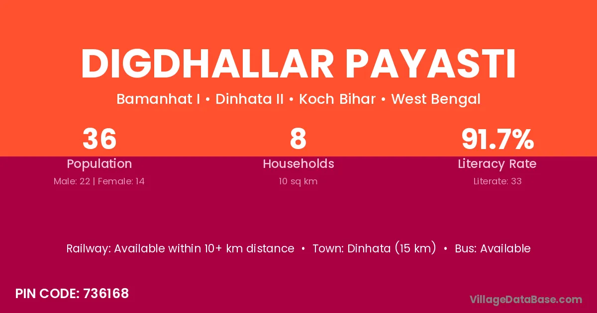 Dinhata (15 km) is the nearest town to Digdhallar Payasti village for major economic activities and is located approximately 15 km away.