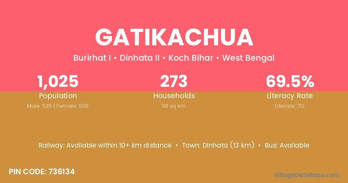 Dinhata (13 km) is the nearest town to Gatikachua village for major economic activities and is located approximately 13 km away.