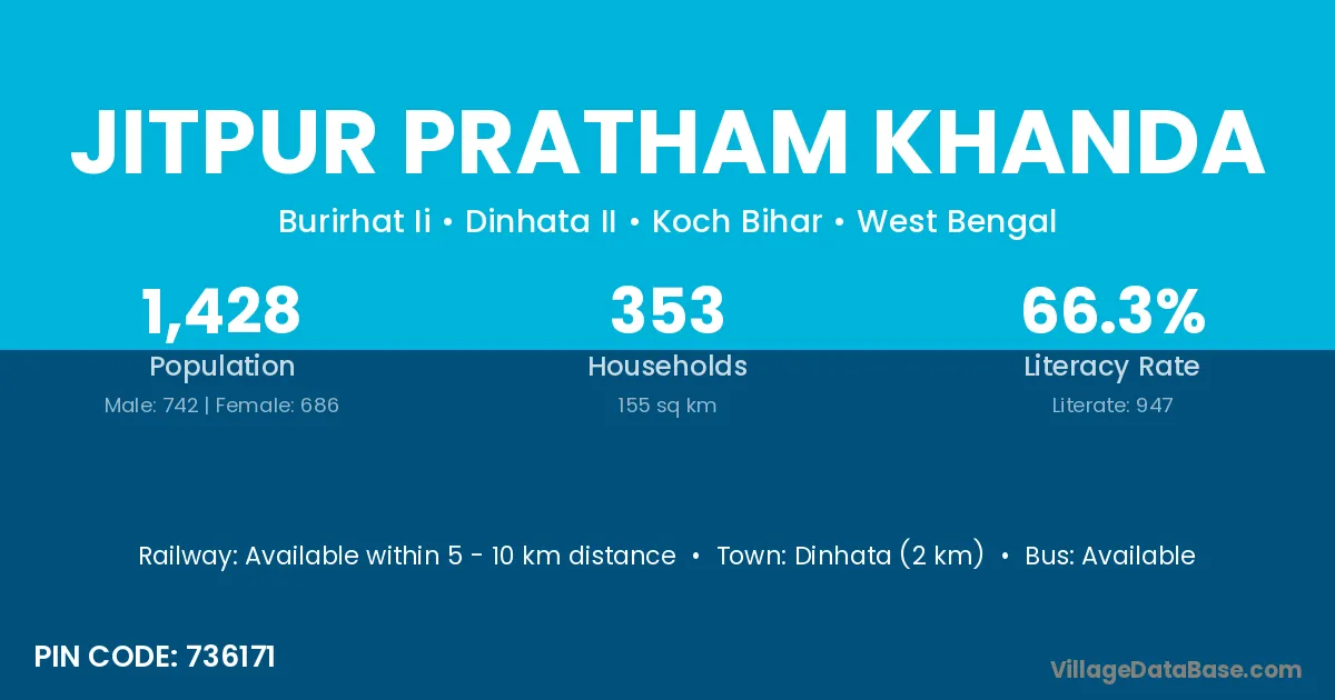 Dinhata (2 km) is the nearest town to Jitpur Pratham Khanda village for major economic activities and is located approximately 2 km away.