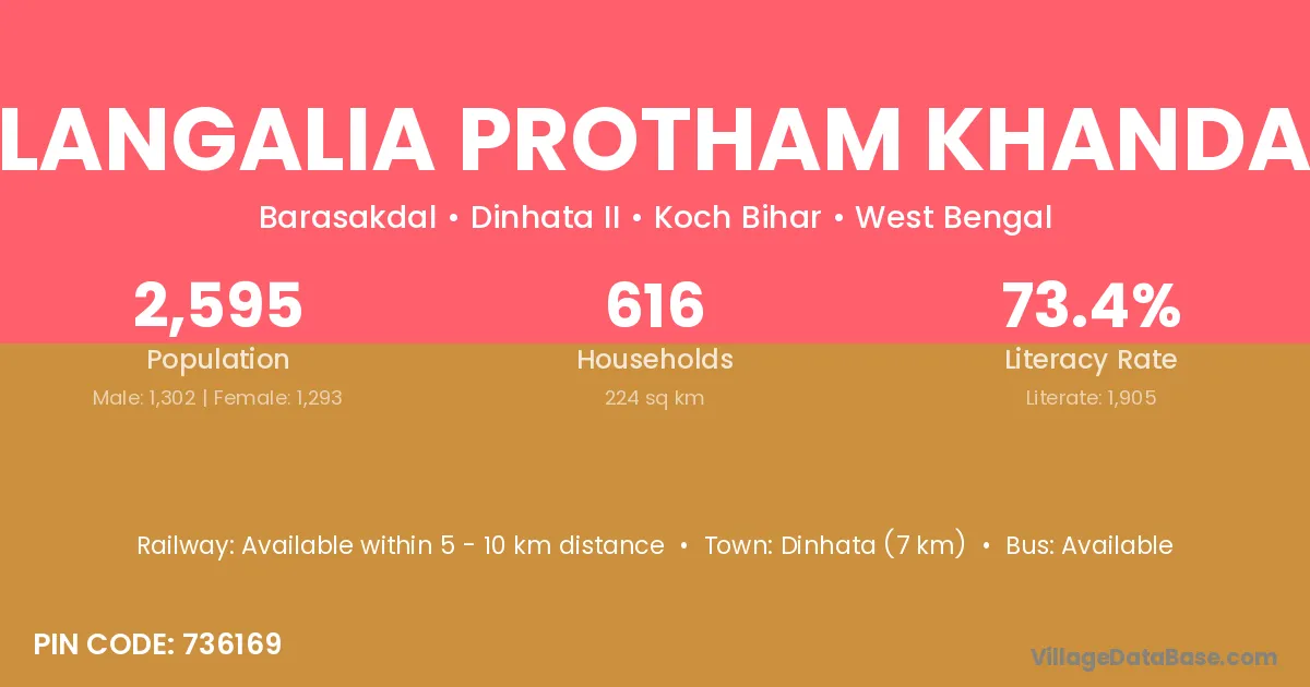 Dinhata (7 km) is the nearest town to Langalia Protham Khanda village for major economic activities and is located approximately 7 km away.
