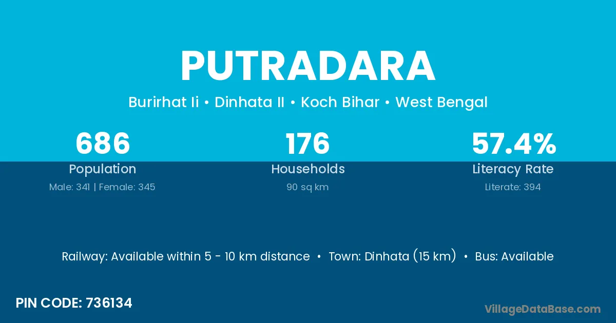 Dinhata (15 km) is the nearest town to Putradara village for major economic activities and is located approximately 15 km away.