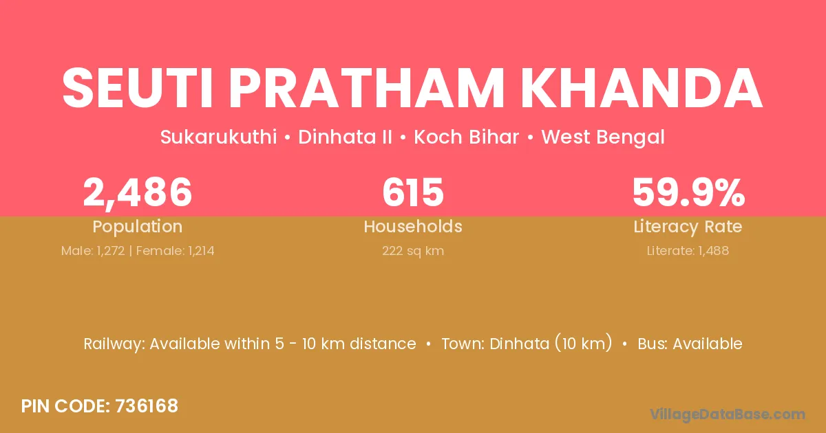 Dinhata (10 km) is the nearest town to Seuti Pratham Khanda village for major economic activities and is located approximately 10 km away.