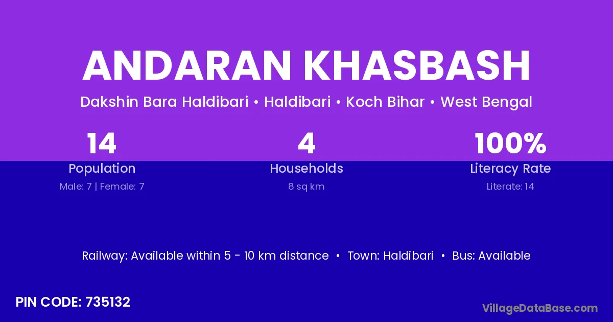 Haldibari is the nearest town to Andaran Khasbash village for major economic activities