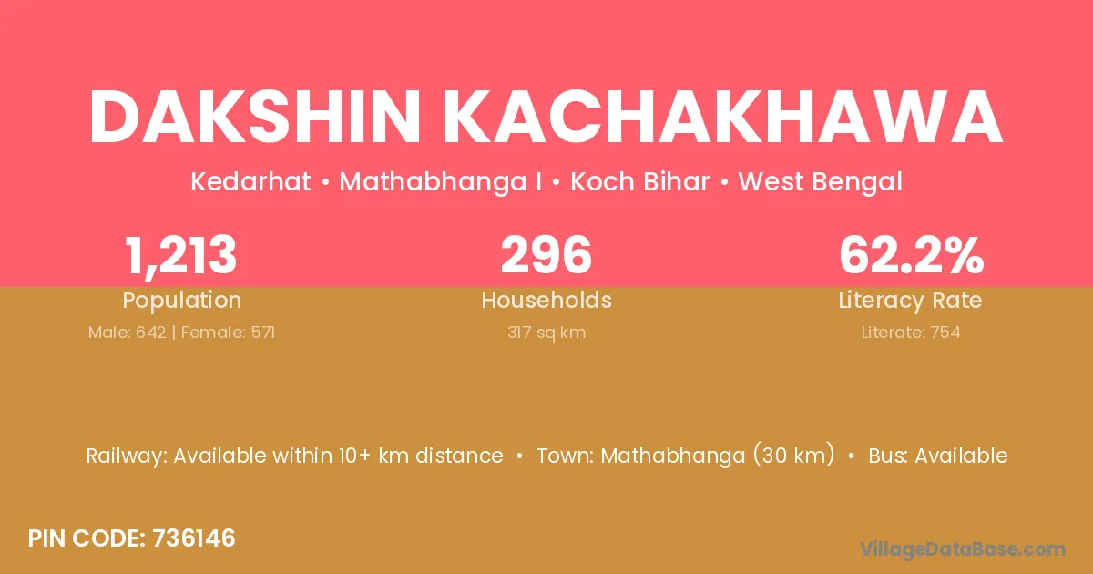 Mathabhanga (30 km) is the nearest town to Dakshin Kachakhawa village for major economic activities and is located approximately 30 km away.