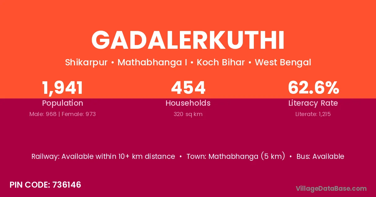 Mathabhanga (5 km) is the nearest town to Gadalerkuthi village for major economic activities and is located approximately 5 km away.