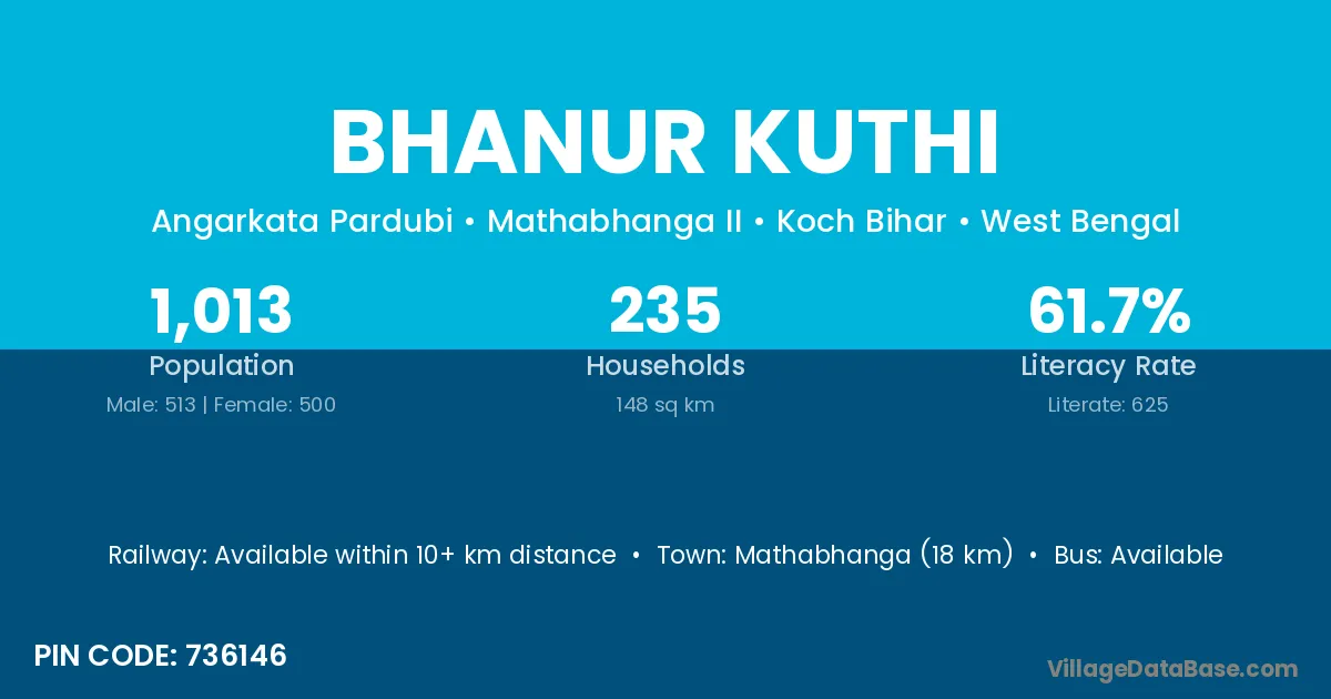 Mathabhanga (18 km) is the nearest town to Bhanur Kuthi village for major economic activities and is located approximately 18 km away.