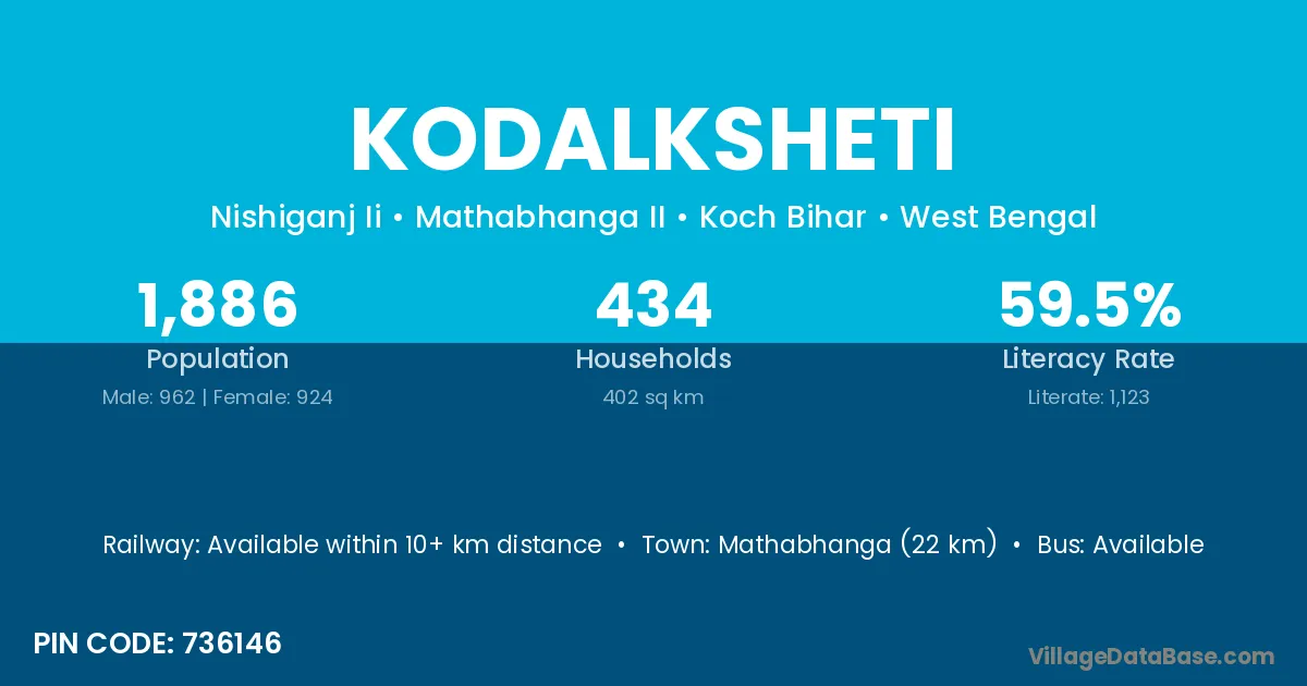 Mathabhanga (22 km) is the nearest town to Kodalksheti village for major economic activities and is located approximately 22 km away.