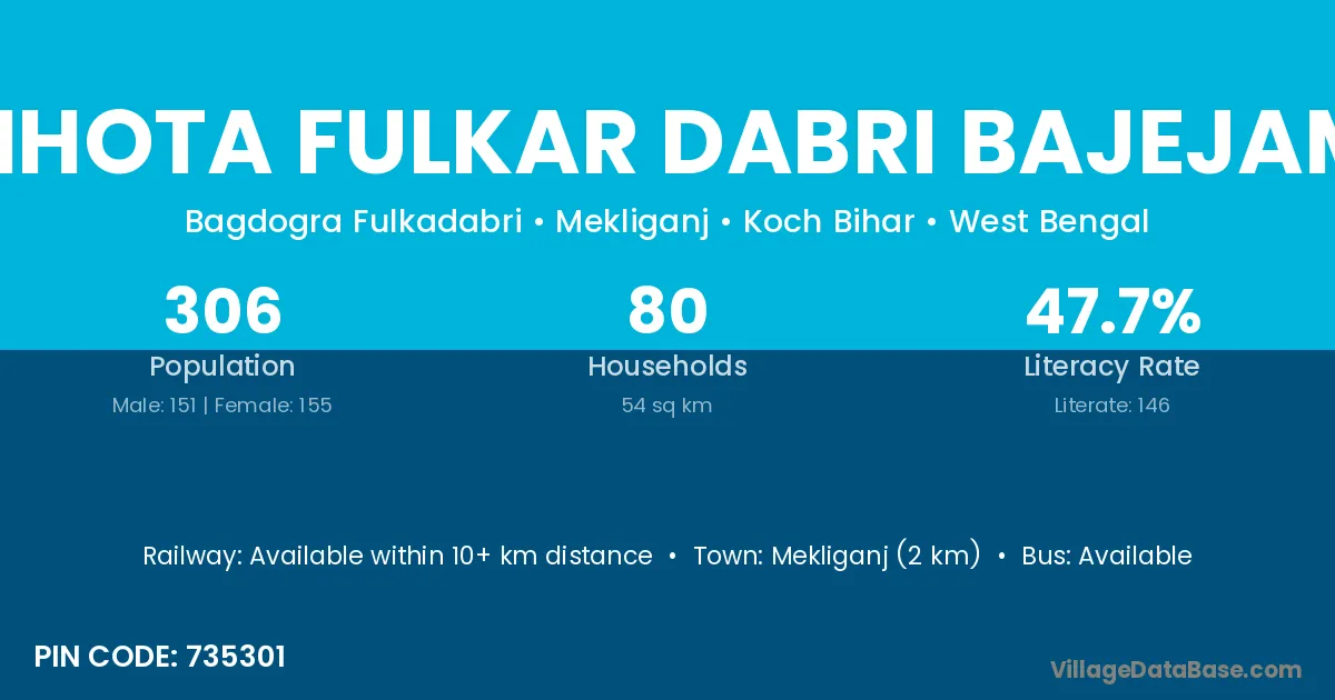 Mekliganj (2 km) is the nearest town to Chhota Fulkar Dabri Bajejama village for major economic activities and is located approximately 2 km away.