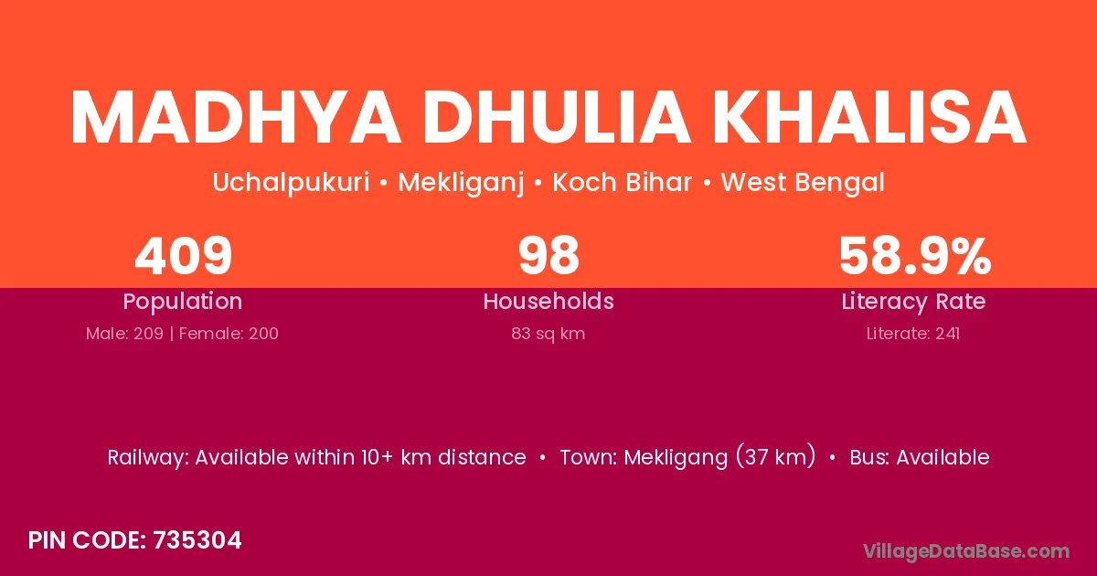 According to Census 2011 information, the village code of Madhya Dhulia Khalisa village is 735304.