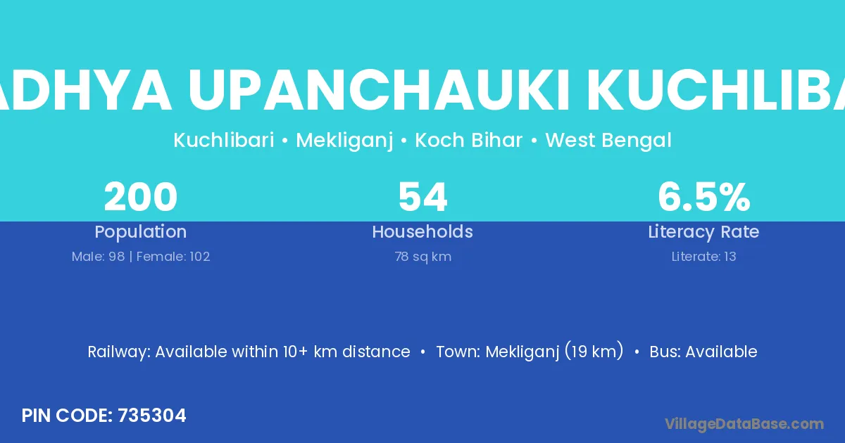 Madhya Upanchauki Kuchlibari village has a total population of 200 people, of which 98 are males and 102 are females.
