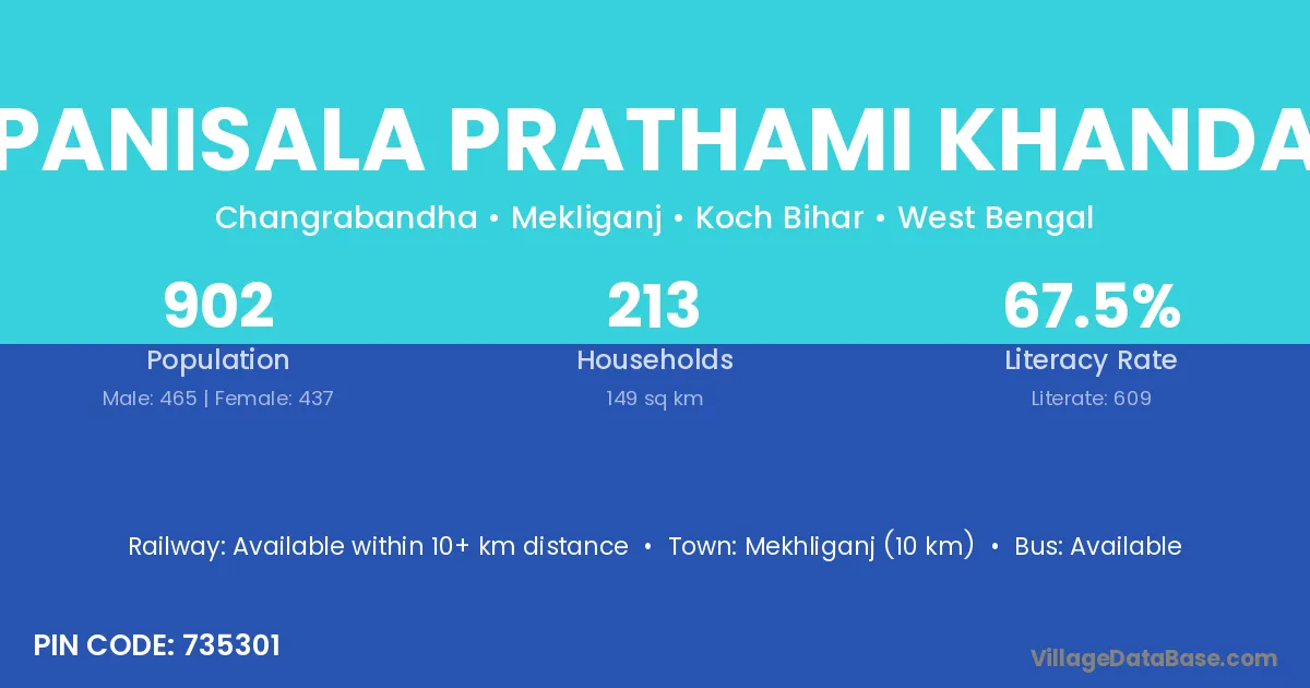 Mekhliganj (10 km) is the nearest town to Panisala Prathami Khanda village for major economic activities and is located approximately 10 km away.