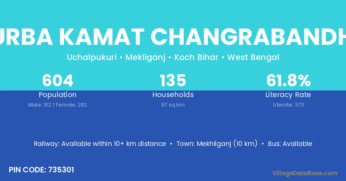Purba Kamat Changrabandha village has a total population of 604 people, of which 312 are males and 292 are females.