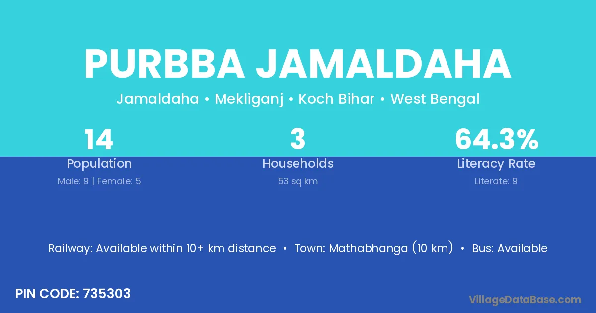 Mathabhanga (10 km) is the nearest town to Purbba Jamaldaha village for major economic activities and is located approximately 10 km away.