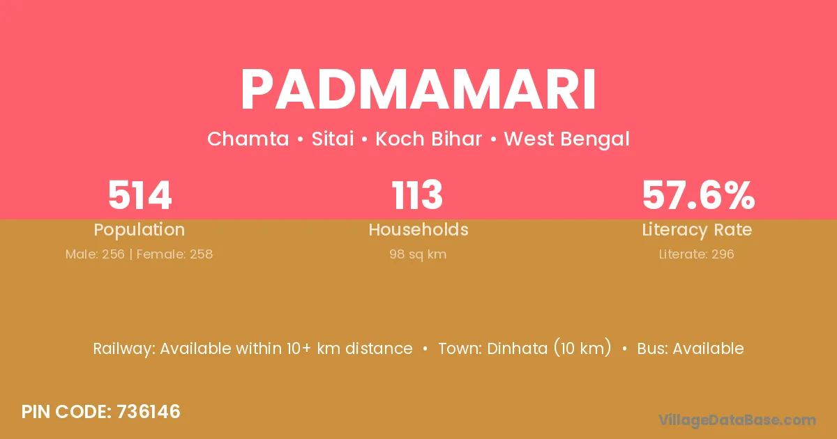 Dinhata (10 km) is the nearest town to Padmamari village for major economic activities and is located approximately 10 km away.