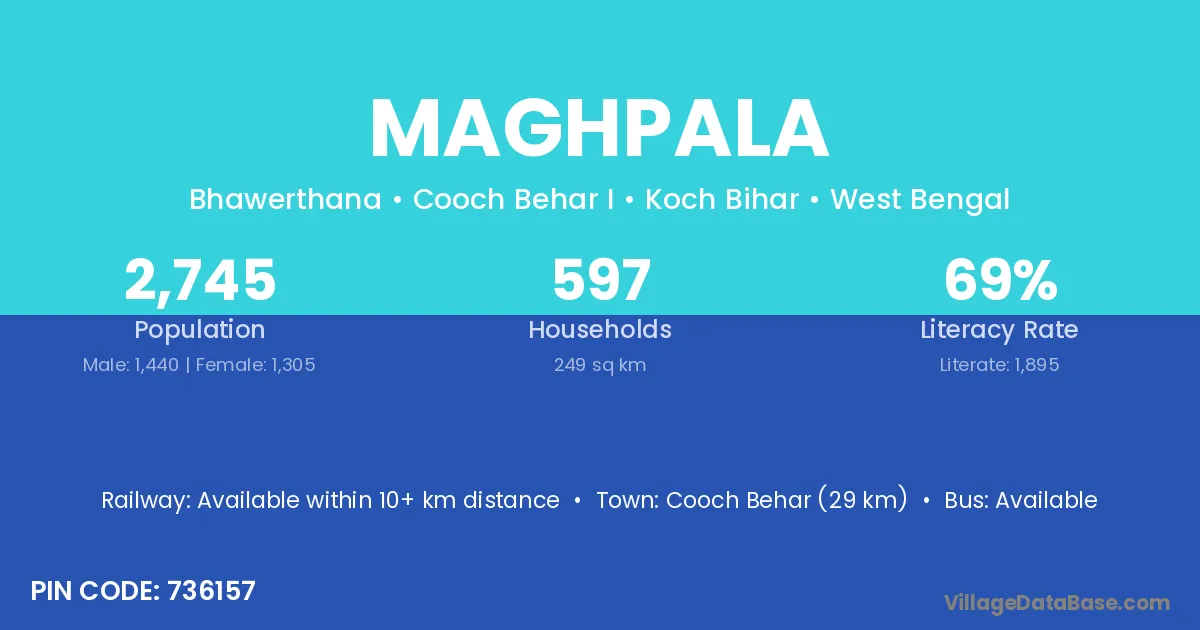 Mathabhanga (22 km) is the nearest town to Maghpala village for major economic activities and is located approximately 22 km away.