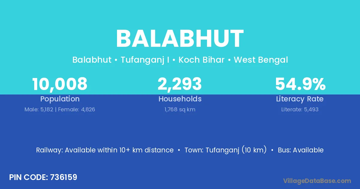 Tufanganj (10 km) is the nearest town to Balabhut village for major economic activities and is located approximately 10 km away.