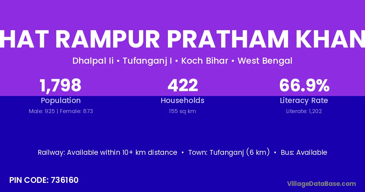 Tufanganj (6 km) is the nearest town to Chhat Rampur Pratham Khanda village for major economic activities and is located approximately 6 km away.