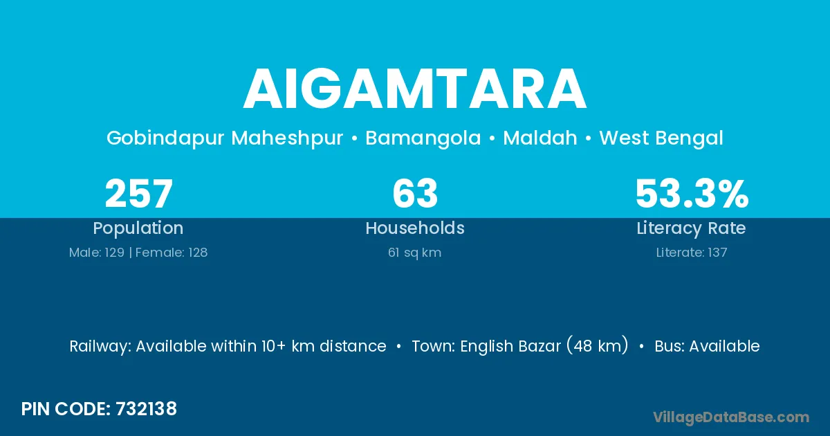 English Bazar (48 km) is the nearest town to Aigamtara village for major economic activities and is located approximately 48 km away.