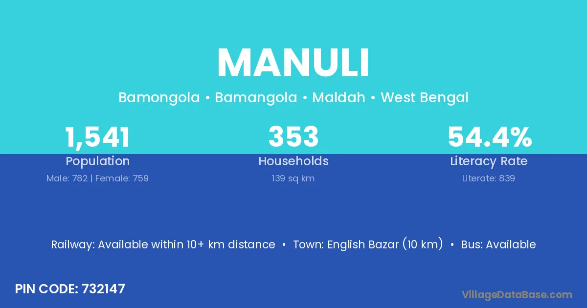 Manuli village is located in the Bamangola Subdivision of the Maldah district in West Bengal.