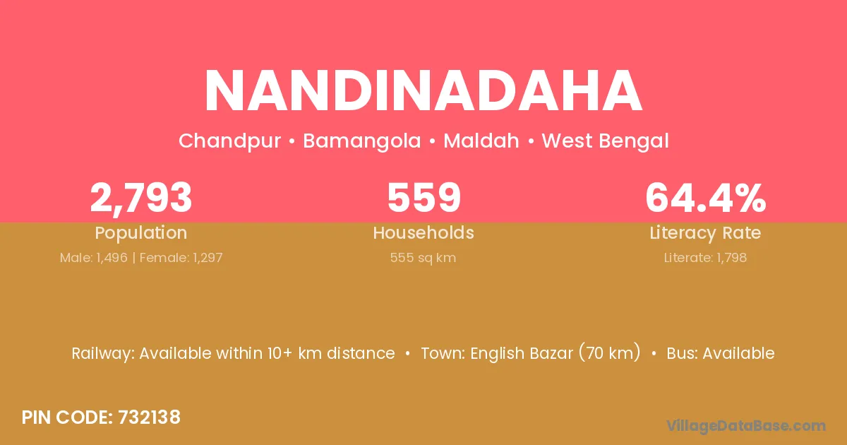 English Bazar (70 km) is the nearest town to Nandinadaha village for major economic activities and is located approximately 70 km away.