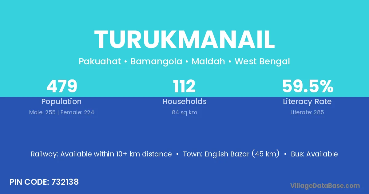 English Bazar (45 km) is the nearest town to Turukmanail village for major economic activities and is located approximately 45 km away.