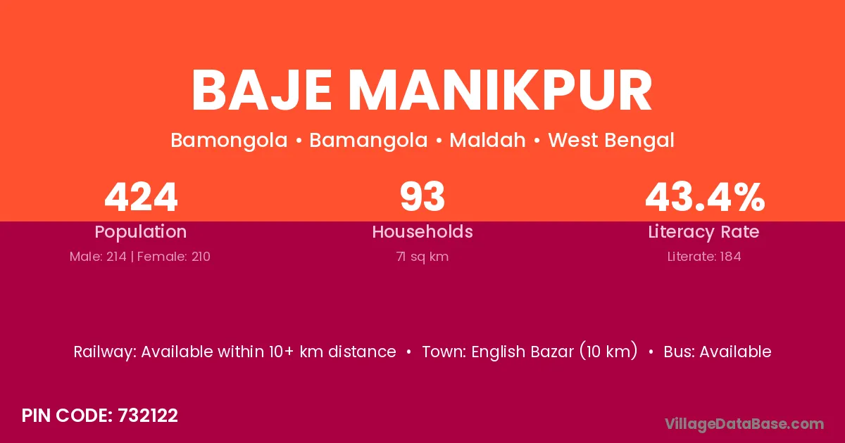 English Bazar (10 km) is the nearest town to Baje Manikpur village for major economic activities and is located approximately 10 km away.