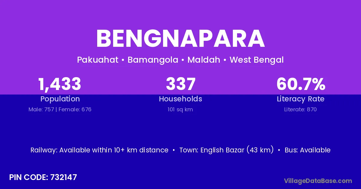 English Bazar (43 km) is the nearest town to Bengnapara village for major economic activities and is located approximately 43 km away.