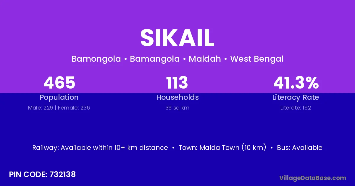 Malda Town (10 km) is the nearest town to Sikail village for major economic activities and is located approximately 10 km away.