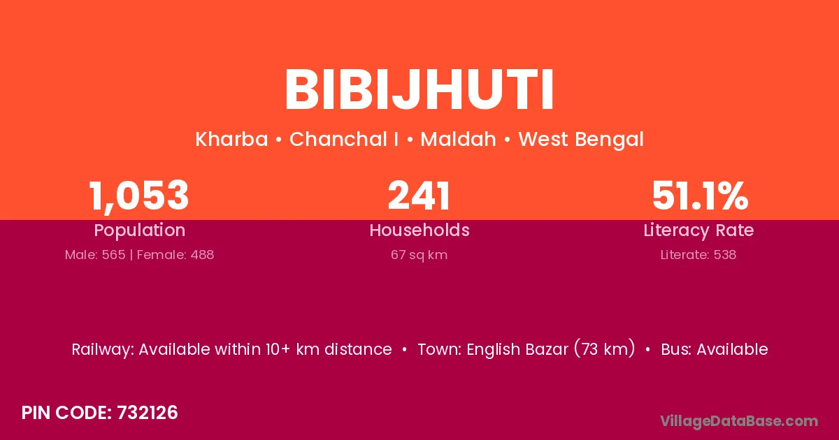 English Bazar (73 km) is the nearest town to Bibijhuti village for major economic activities and is located approximately 73 km away.