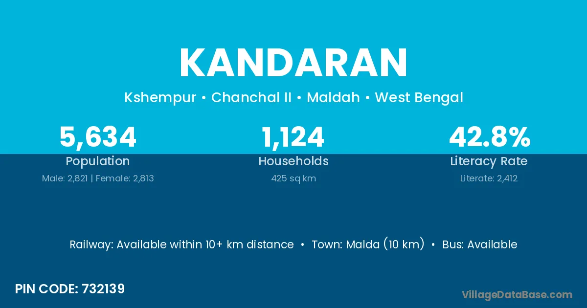 Malda (10 km) is the nearest town to Kandaran village for major economic activities and is located approximately 10 km away.