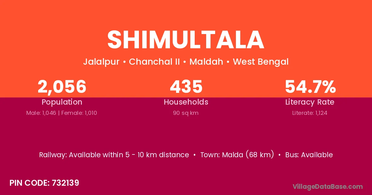Shimultala village is located in the Chanchal II Subdivision of the Maldah district in West Bengal.