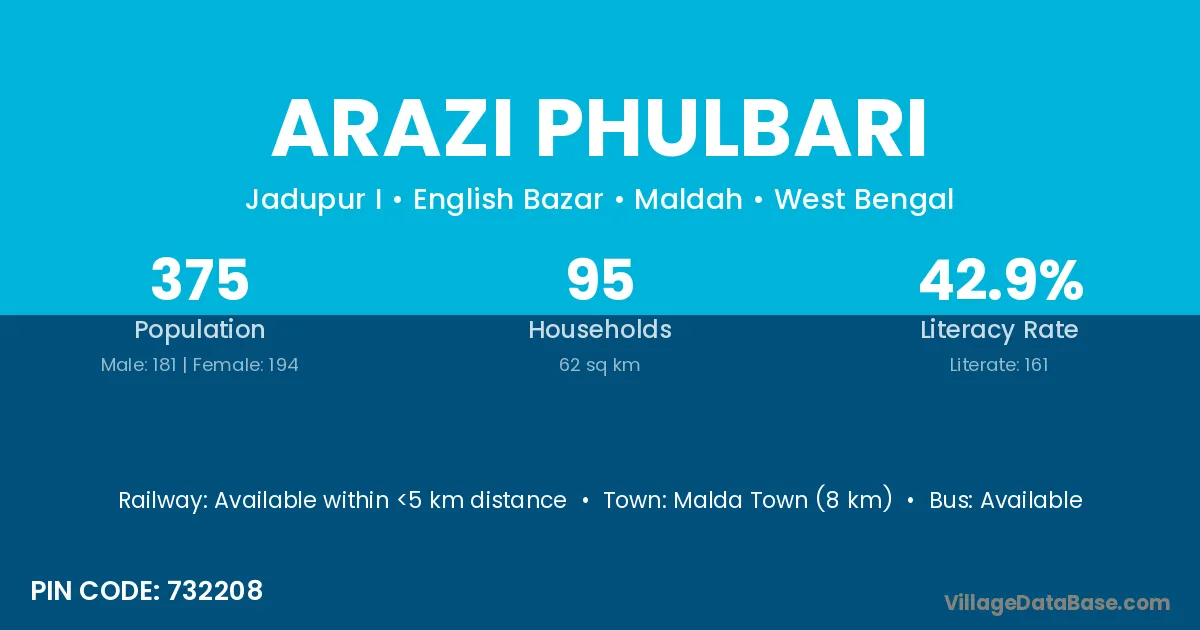 Arazi Phulbari village is located in the English Bazar Subdivision of the Maldah district in West Bengal.