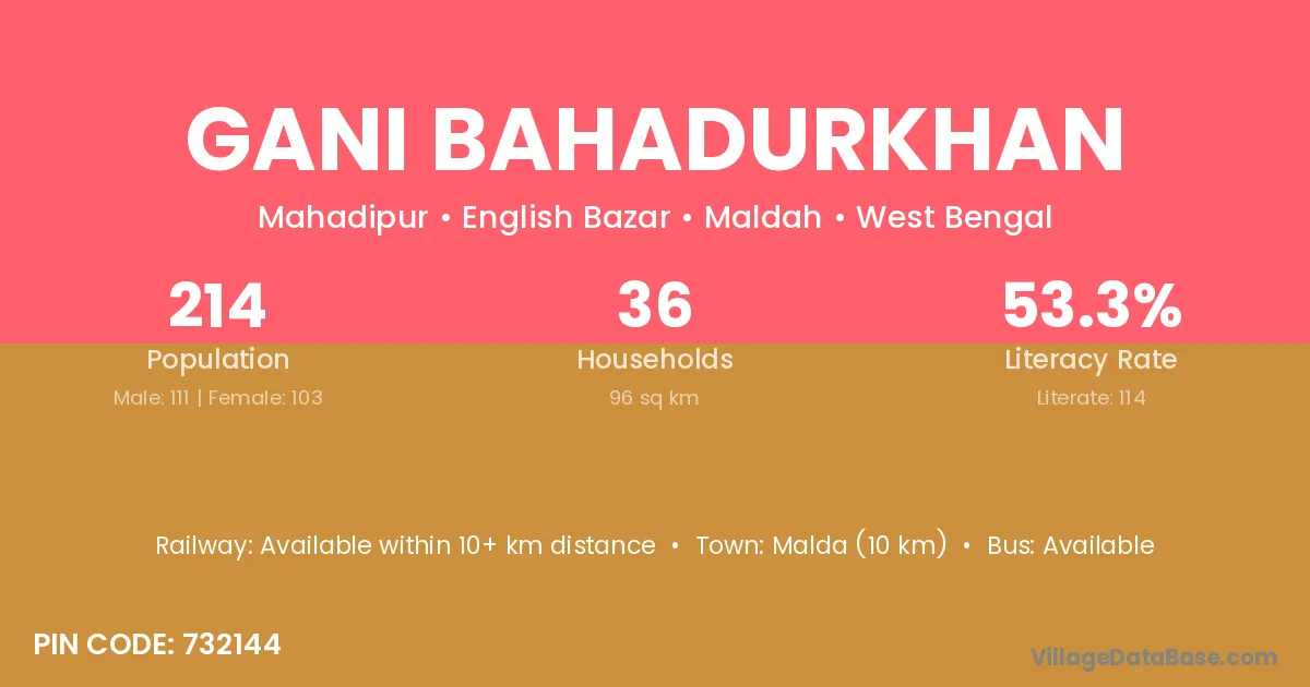 Malda (10 km) is the nearest town to Gani Bahadurkhan village for major economic activities and is located approximately 10 km away.