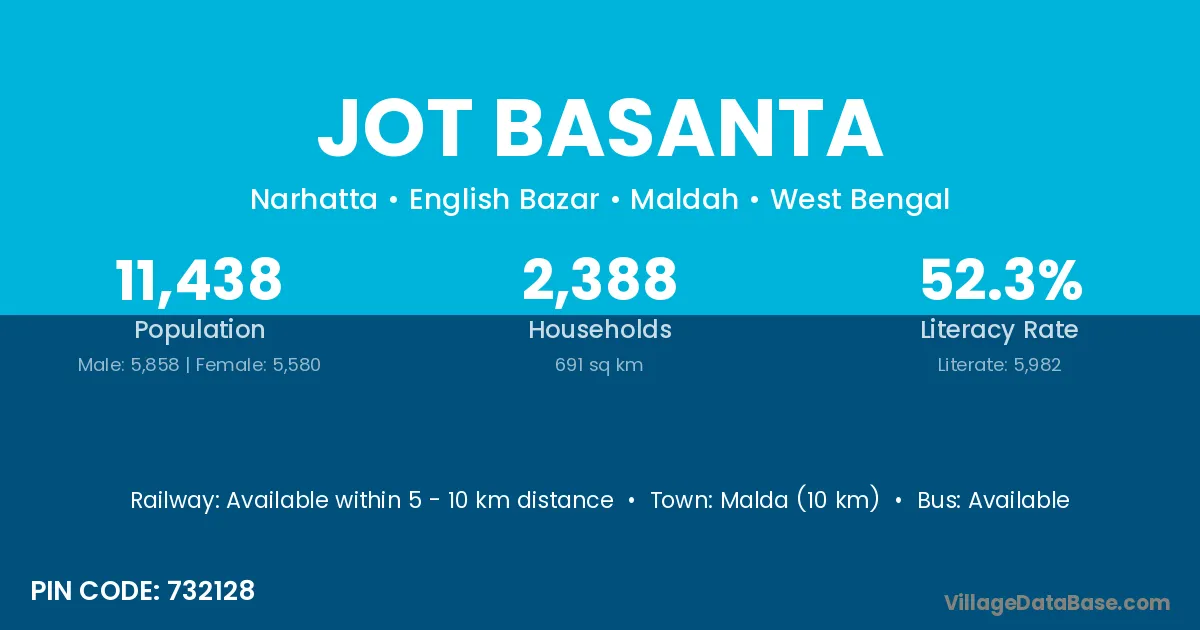 Malda (10 km) is the nearest town to Jot Basanta village for major economic activities and is located approximately 10 km away.