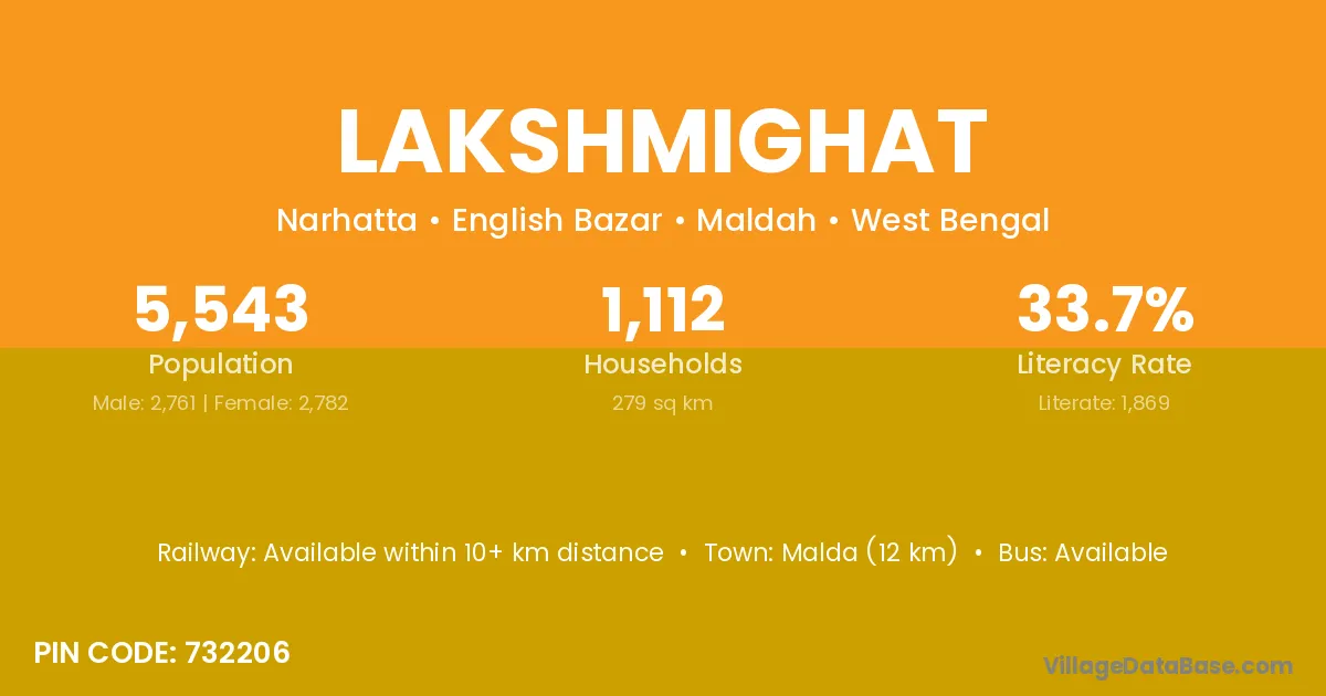 Malda (12 km) is the nearest town to Lakshmighat village for major economic activities and is located approximately 12 km away.