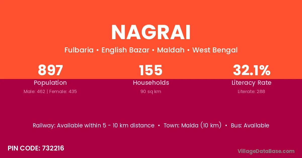 Malda (10 km) is the nearest town to Nagrai village for major economic activities and is located approximately 10 km away.