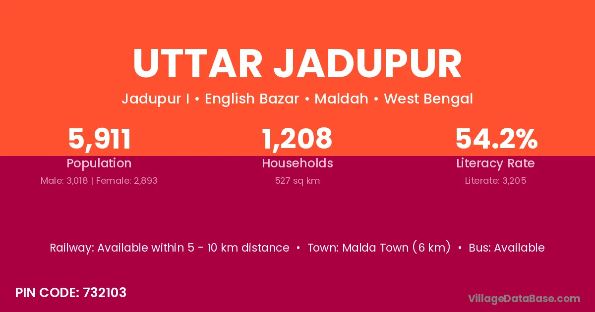 Malda Town (6 km) is the nearest town to Uttar Jadupur village for major economic activities and is located approximately 6 km away.