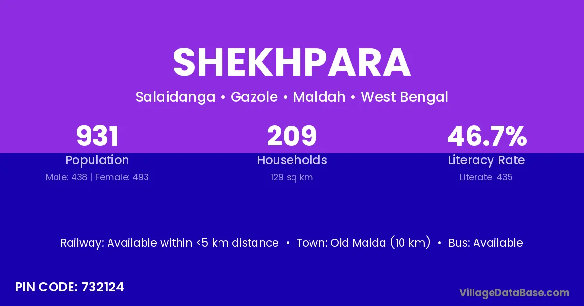 Old Malda (10 km) is the nearest town to Shekhpara village for major economic activities and is located approximately 10 km away.