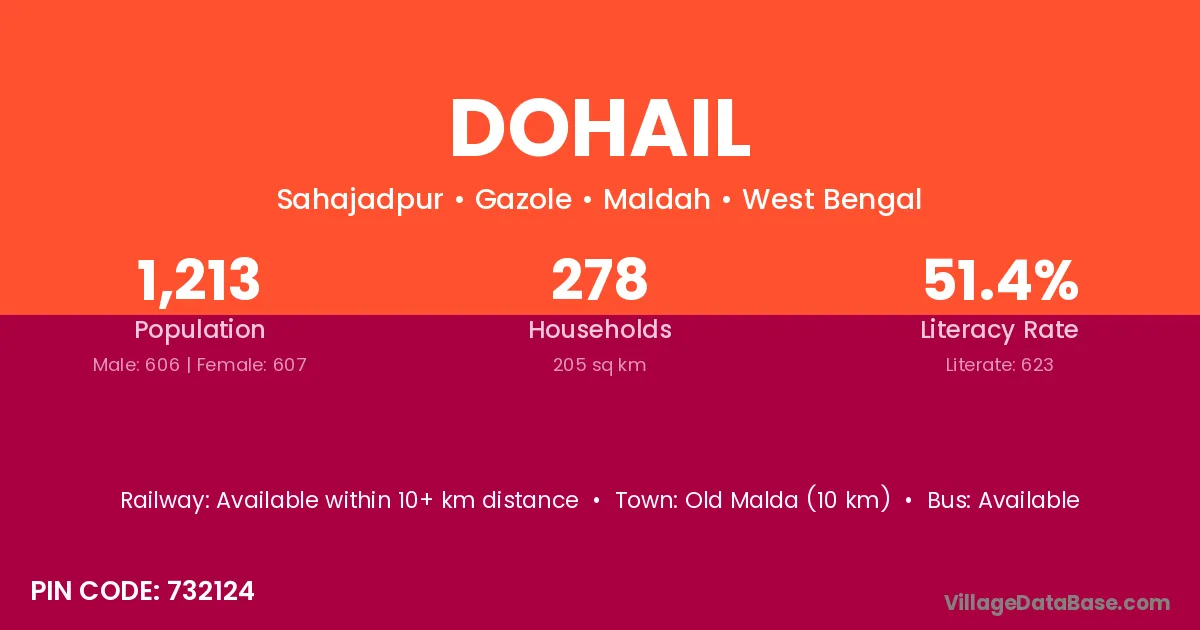 Old Malda (10 km) is the nearest town to Dohail village for major economic activities and is located approximately 10 km away.